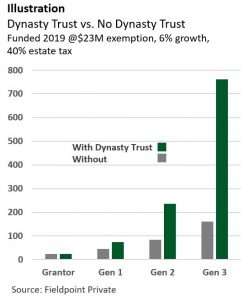 For all the appeal of the SLAT in its basic form, it can be substantially enhanced. By using your generation-skipping transfer tax (GST) exemption, a SLAT can be structured as a “dynasty” trust (learn more). Such a trust can continue into perpetuity, passing from generation to generation, free of estate and GST tax.